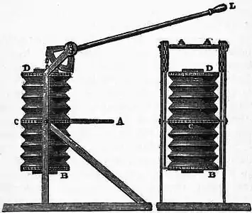 Циліндричний міх, малюнок з Енциклопедії Британіка, 1911 р.