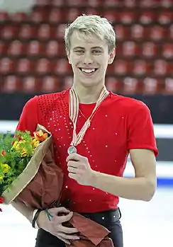 | Міхал Бржезіна на подіумі Чемпіонату світу з фігурного катання серед юніорів 2008 року | ||