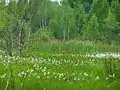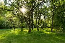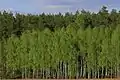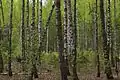 Переважають соснові, дубово-соснові та дубово-грабові ліси. Є значні ділянки дубово-липових, вільхово-березових і ясенево-вільхових лісів. У лісах чітко виділяється ярусність. Верхній ярус утворюють дерева, середній, підлісок, — кущі, нижній — трав'янисті рослини, гриби. У північній частині переважає сосна звичайна і дуб звичайний. Південніше частішають в лісах граб, береза, липа, осика, клен, вільха. Серед підліску зустрічається ожина, шипшина, барбарис, ліщина, малина. На заболочених місцях поширені брусниця і чорниця. Навесні в лісі першими зацвітають підсніжники, проліски, ряст, анемони. Пізніше — конвалія, фіалки, купина, сон-трава. Влітку під деревами вегетують лише вологолюбні, тіньовитривалі рослини — папороті, мохи, копитняк. Інші трав'янисті рослини ростуть на галявинах і узліссях. Серед них: звіробій, деревій, валеріана, ромашка, іван-чай. У мішаних лісах багато грибів. Восени дерева скидають листя, більшість трав'янистих рослин відмирає. Опале листя і відмерлі рослини утворюють лісову підстилку, яка затримує вологу в ґрунті.