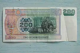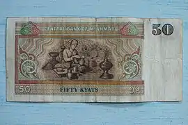 Емісією місцевої валюти займається Центральний банк М'янми. В обігу перебувають банкноти номіналом 50, 100, 200, 500, 1000, 5000 І 10000 к'ят.
