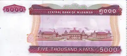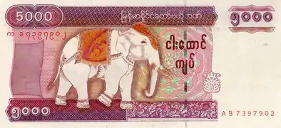 1 жовтня 2009 Центральний банк М'янми почав випуск банкноти 5000 к'ят. Розміром 150×70 мм, на лицьовій стороні зображений білий слон, на звороті — Центральний банк країни, з написом номіналу англійською мовою.