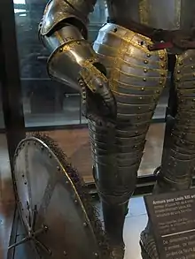 Зверху до набедреників примикали спідничка кіраси й настегнові щитки, знизу — наколінники.