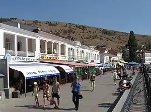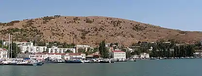 З набережною Назукіна відкривається вид на Балаклавську бухту і гору Кастрон з руїнами фортеці Чембало.