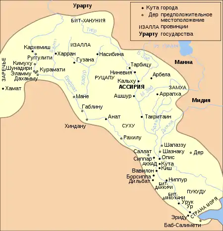 Наближення головних сил ассирійців змусило Набопаласара, від якого до того часу відпали деякі аккадські міста, відступити і віддати ассирійцям басейн Середнього Євфрату без бою. На крайньому півдні Урук знову визнав своїм царем Сін-шар-ішкуна. Про те в якій мірі Ассирія в цей час відчувала себе в безпеці, свідчить той факт, що в 613 році до н. е. були знесені укріплення міста Кальху, у зв'язку з передбачуваною їх перебудовою.