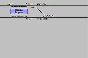 Станція з колійним розвитком — 2 стрілочних переводи і пошерсний з'їзд .