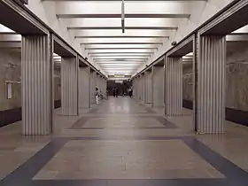 Конструкція станції — колонна трипрогінна мілкого закладення (глибина закладення — 9 м). Споруджена за типовим проектом. На станції два ряди по 26 колон. Крок колон становить 6,5 м.