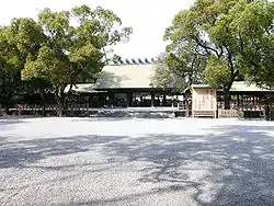 Святилище Ацута — найдавніша у місті синтоїстська святиня, будівництво якої, за легендами, датують 2 століттям по Р. Х. У ній вшановують КусаНагі-но-цуруґі — божественний меч, одну з трьох священних реліквій Імператора Японії. | ![]() |