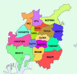 - яп. 中京, ちゅうきょう, МФА: [t͡ɕuːkʲoː]. Означає «серединна столиця» між стародавньою столицею Кіото на заході та сучасною столицею Токіо на сході.