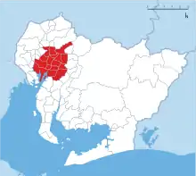 1871 року, у результаті адміністративної реформи новгого уряду Мейдзі була утворена префектура Нагоя. Її поділили на 6 районів, першим з яких був район містечок Нагоя та Ацута. П'ять років по тому префектуру Нагоя перейменували у префектуру Айті, а ще за два роки містечко Нагоя стало самостійним адміністративним районом.