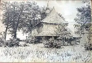 ![]() Давня церква св. Димитрія, рисунок 1918 року | |
