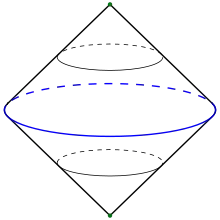 Надбудова над колом. Початковий простір позначено синім кольором, верхню і нижню точки зеленим.