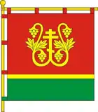 На червоному полі золотий православний пророслий хрест-виноградна лоза. На зеленій базі золоті бочки з чорними обручами, один і два. Щит розміщений у золотому картуші, увінчаний золотою сільською короною.