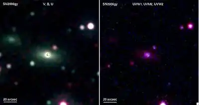 - Smith, Nathan; Li, Weidong; Foley, Ryan J.; Wheeler, J. Craig; Pooley, David; Chornock, Ryan; Filippenko, Alexei V.; Silverman, Jeffrey M.; Quimby, Robert; Bloom, Joshua S.; Hansen, Charles (2007). SN 2006gy: Discovery of the Most Luminous Supernova Ever Recorded, Powered by the Death of an Extremely Massive Star like η Carinae. The Astrophysical Journal 666 (2): 1116–1128. Bibcode:2007ApJ...666.1116S. arXiv:astro-ph/0612617. doi:10.1086/519949.