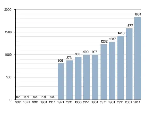 Станом на 31 грудня 2014 року в муніципалітеті офіційно проживало 112 іноземців з 21 країни, серед них 75 громадян країн Євросоюзу та 3 громадяни України.[4]