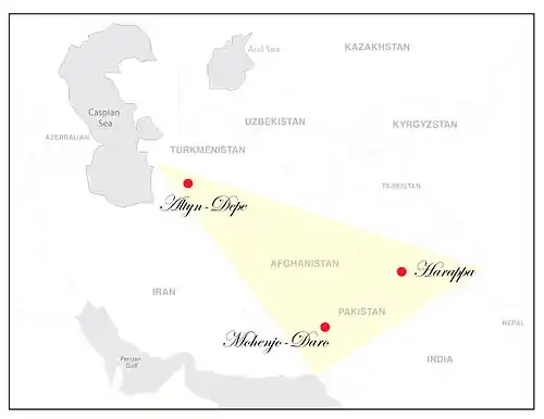 В III тисячолітті до Р. Х. у двох центрах ранньоміських цивілізацій на півдні Середньої Азії — Алтин-Депе і Намазга-Депе — проживало від 5000 до 10000 осіб [1]. Площа тепе — 70 га. .[2][3][4]