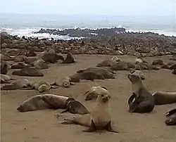 Прибережне море внаслідок створюваного течією Бенгела апвелінгу надзвичайно багате рибою. Вона приваблює сюди велику кількість тюленів, які в сезон розмноження виходять на пустельні береги сотнями тисяч, щоб вивести малят. Тюленячі лежбища знаходяться переважно в межах Шпергебіту та національного парку «Берег Скелетів», доступ куди суворо обмежено; туристи відвідують лише лежбище на території заповідника Кейп-Кросс на півночі від Свакопмунду. З колоній тюленів живляться групи сухопутних хижаків — шакалів, гієн, а також так звані берегові леви (які полюють на хворих та знесилених особин і малят) і деякі гризуни. Прибережна зона з островами також щільно населена колоніями морських птахів — фламінго, пеліканів, бакланів; на півдні, на островах бухти Людериц, існують значні колонії пінгвінів. З невеликих прибережних островів, таких як Ічабо, щороку збирають значну кількість пташиного гуано.