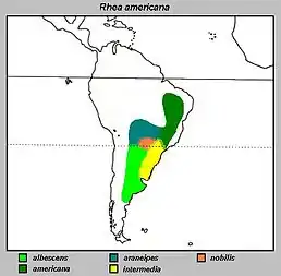 Виділяють 5 підвидів північного нанду[7]: