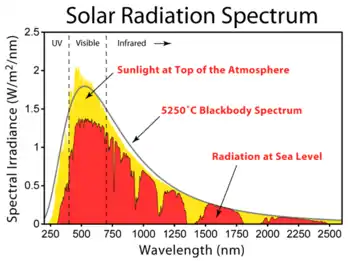 Наноантена є колектором електромагнітного випромінювання, призначеним для поглинання енергії певної довжини хвилі, пропорційної розміру наноантени. На сьогодні Національна лабораторія штату Айдахо розробила наноантени для поглинання довжин хвиль в діапазоні 3-15 мкм, [3] що відповідають енергії фотонів 0.08-0.4 еВ. На основі теорії антен наноантена може ефективно поглинути світло будь-якої довжини хвилі за умови, що розмір наноантени оптимізований під конкретну довжину хвилі. В ідеалі наноантени найкраще використовувати для поглинання світла на довжинах хвиль 0.4-1,6 мкм, тому що ці хвилі мають більшу енергію, ніж інфрачервоні (довгі хвилі), і вони складають близько 85% сонячного спектра випромінювання (див. Рис. 1) . [4]