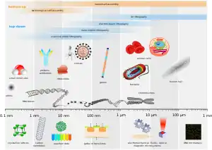 Порівняння масштабів різних біологічних та технологічних об'єктів.