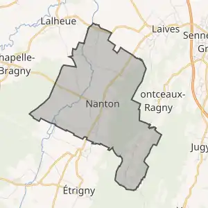 - Розташування муніципалітету Нантон на мапі Франції та сусідні муніципалітети