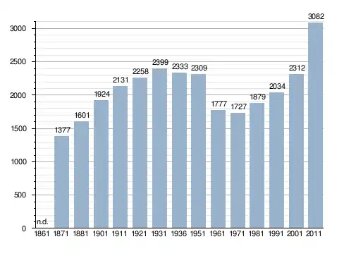 Станом на 31 грудня 2014 року в муніципалітеті офіційно проживало 275 іноземців з 27 країн, серед них 55 громадян країн Євросоюзу та 2 громадяни України.[4]