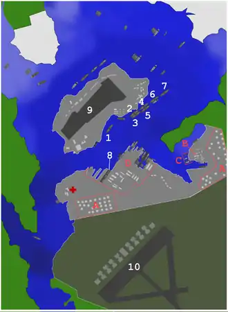 ![]() Підбитий японською авіацією лінкор «Арізона». Підбитий японською авіацією лінкор «Арізона». | |||||||