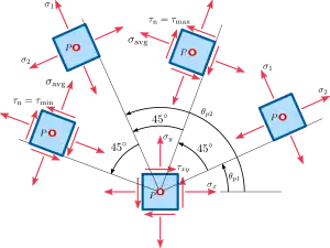 При зміні напрямку координатних осей напруження на гранях елементарного паралелепіпеда змінюються. Теоретично доведено[2], що можна завжди знайти таке положення паралелепіпеда, коли на його гранях .