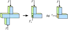 - Дотичне напруження (напруження зсуву) — зусилля прикладене до одиниці площі перерізу зразка, спрямоване у площині перерізу (позначається ).
