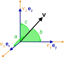 де ex, ey, ez стандартний базис у декартовій системі координат, тоді напрямні косинуси це: