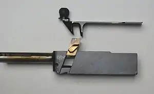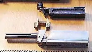 Між затвором Бліша і стінками ствольної коробки був бронзовий вкладиш, який ковзав по двох пазах-напрямних під кутом близько 70° до осі ствола. Бронза по сталі ковзає легко, і переміщенню затвора рукою вкладиш не заважає — вислизає і звільняє затвор. Але при дуже високому тиску коефіцієнт тертя зростає. Тому при пострілі, коли зусилля на вкладиші росте стрибком, він заклинює і утримує затвор, поки тиск не спаде.