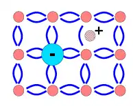 Під час розриву зв'язку між електроном і ядром з'являється вільне місце в електронній оболонці атома. Це обумовлює перехід електрона з іншого атома на атом з вільним місцем. На атом, звідки перейшов електрон, входить інший електрон з іншого атома і т. д. Цей процес обумовлюється ковалентними зв'язками атомів. Таким чином, відбувається переміщення позитивного заряду без переміщення самого атома. Цей умовний позитивний заряд називають діркою.