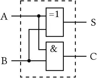 Схема носить назву «напівсуматор», оскільки при реалізації одного розряду повного двійкового суматора слід враховувати також вхід переносу з попереднього розряду, для чого треба використати дві таких схеми та один елемент «АБО».