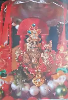 Шрідеві, Бгудеві, Нарада0 зі своєю лютнею і Прахлада, син демона, який шанує Вішну, зображуються по одну з двох сторін від Бога. Вісім сторін світу також супроводжують Нарасімгу.