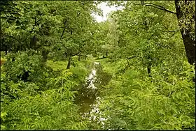 - Неподалік від витоку річку перетинає залізнична колія (тупик), що обслуговує Мозирський нафтопереробний завод.