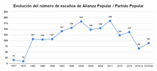 На парламентських виборах 2011 р. набрала 44,62% голосів виборців, завоювавши 186 місці в парламенті. Голова Народної партії Маріано Рахой очолив новий уряд.