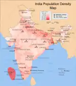 Населення Індії. Чисельність населення країни 2020 року становила 1,380 млрд осіб (2-ге місце у світі після Китаю)[1]. Чисельність індійців стабільно збільшується, народжуваність 2015 року становила 19,55 ‰ (87-ме місце у світі), смертність — 7,32 ‰ (118-те місце у світі), природний приріст — 1,22 ‰ (98-ме місце у світі)
