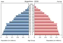 Вікова структура населення Аргентини, станом на 2015 рік, виглядає таким чином: