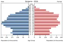 Вікова структура населення Болгарії, станом на 2015 рік, виглядає таким чином: