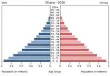 Вікова структура населення Гани, станом на 2015 рік, мала такий вигляд: