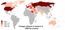 З початку 1990-их років у Греції з'явилося багато іммігрантів і їхня кількість має тенденцію постійно зростати. Перепис населення 2001 року показав, що на той час у країні проживало 797 091 іноземців, що становило 6.95 % загальної кількості населення, тоді як число іммігрантів у 1990 становило 142 367 осіб[5][6]. Більшість з них прибули у Греції із сусідніх країн. Станом на 2006 рік із всього населення країни, що дорівнювало 11 148 533 осіб, 695 979 були іммігрантами (6,24 %)[7][8].