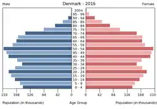 Вікова структура населення Данії, станом на 2015 рік, виглядає таким чином: