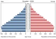 Вікова структура населення Еквадору, станом на 2015 рік, виглядає таким чином: