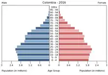 Вікова структура населення Колумбії, станом на 2015 рік, мала такий вигляд: