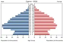 Вікова структура населення Кіпру, станом на 2015 рік, виглядає таким чином: