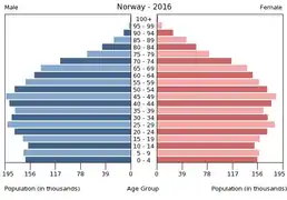 Населення Норвегії. Чисельність населення країни 2015 року становила 5,207 млн осіб (121-ше місце у світі)[1]. Чисельність норвежців стабільно збільшується, народжуваність 2015 року становила 12,14 ‰ (163-тє місце у світі), смертність — 8,12 ‰ (95-те місце у світі), природний приріст — 1,13 % (108-ме місце у світі)