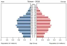 Вікова структура населення Тайваню, станом на 2015 рік, мала такий вигляд: