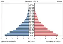 Вікова структура населення Танзанії, станом на 2015 рік, виглядає наступним чином: