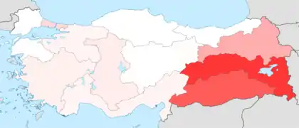 Головні етноси країни: турки — 70-75 %, курди — 18 %, інші нацменшини — 7-12 % населення (оціночні дані за 2008 рік)[1].