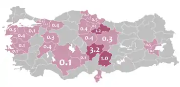 | Джерело: Дані управління статистики Туреччини[23][24] | ||