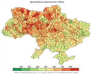 - Таблиця: Демографічне навантаження на населення у віці 15-64 роки : [укр.] : вебсайт. — Банк даних Державної служби статистики України. — Дата звернення: 13 лютого 2018 року.